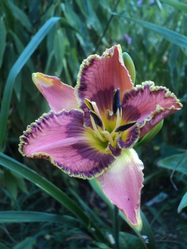 Hodowca: Yost, 2002 Wysokość: ok 70cm Kwiaty: kwiaty w kolorze różowo- lawendowym z ciemnym lawendowym okiem i lawendowo-zieloną falbaną , gardziel złota . Wielkość kwiatu ok 15 cm. Stanowisko: słoneczne do półcienistego. Mrozoodporność: zimuje bez okrycia .