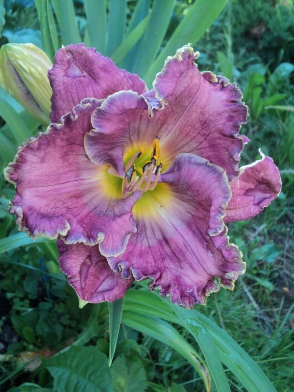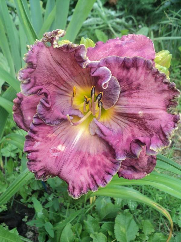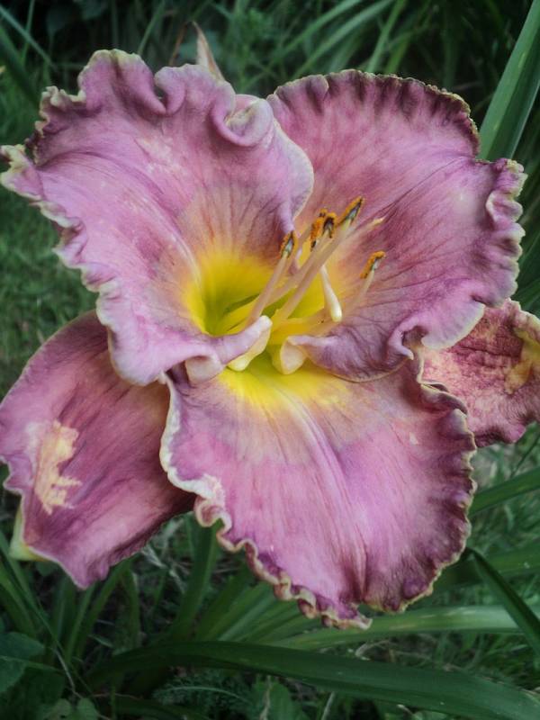 Hodowca: Grace-Smith ,2004 Wysokość: ok 85 cm Kwiaty: kwiaty w kolorze lawendowym ,z niebieskim znakiem wodnym i niebiesko -fioletowym okiem , gardło żółte , płatki wykończone fioletowo-zieloną falbanką . Wielkość kwiatu ok 15 cm. Stanowisko: słoneczne do półcienistego. Mrozoodporność: zimuje bez okrycia . Uwagi: