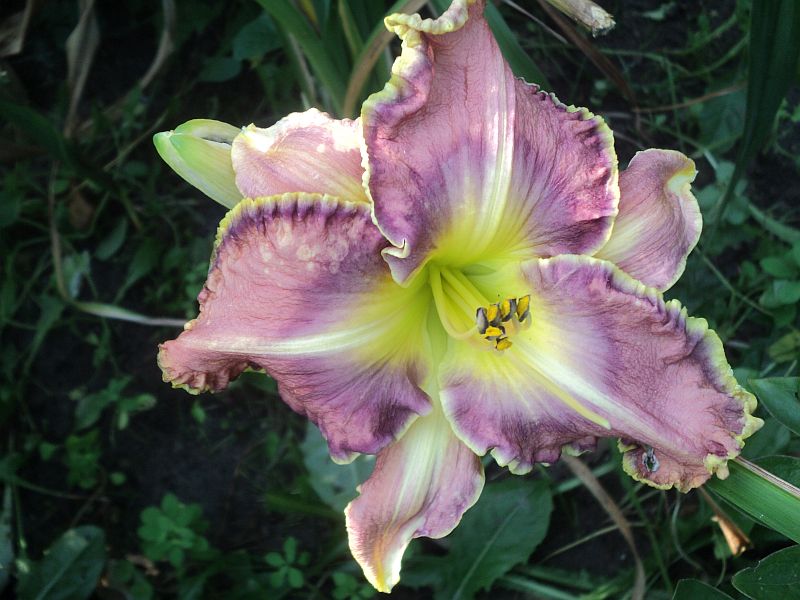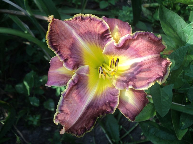 Hodowca: Lambertson, 2006 Wysokość: ok 60cm Kwiaty: kwiaty w kolorze fioletowo-jagodowym ,z fioletowo - niebieskim okiem , gardło żółto-zielone .Krawędź płatków wykończona falbaną w kolorze oka i zieleni.. Wielkość kwiatu ok 15 cm. Stanowisko: słoneczne do półcienistego. Mrozoodporność: zimuje bez okrycia . Uwagi;