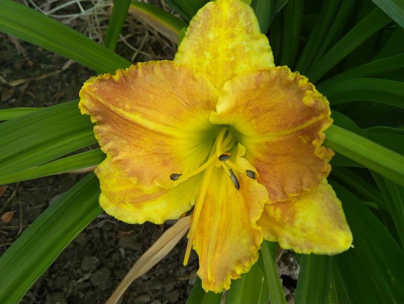 Pierwszy NN to z pewnością Smuggler's Gold. Jest dość charakterystyczny i ja go bardzo lubię bo szybko przyrasta, jest mocny i pewnie kwitnie ale... do ładnego wybarwienia potrzebuje ładnej pogody. Po deszczu i zimnie właśnie tak wygląda. W zależności od pogody, oświetlenia wygląda ładniej lub troszkę mniej