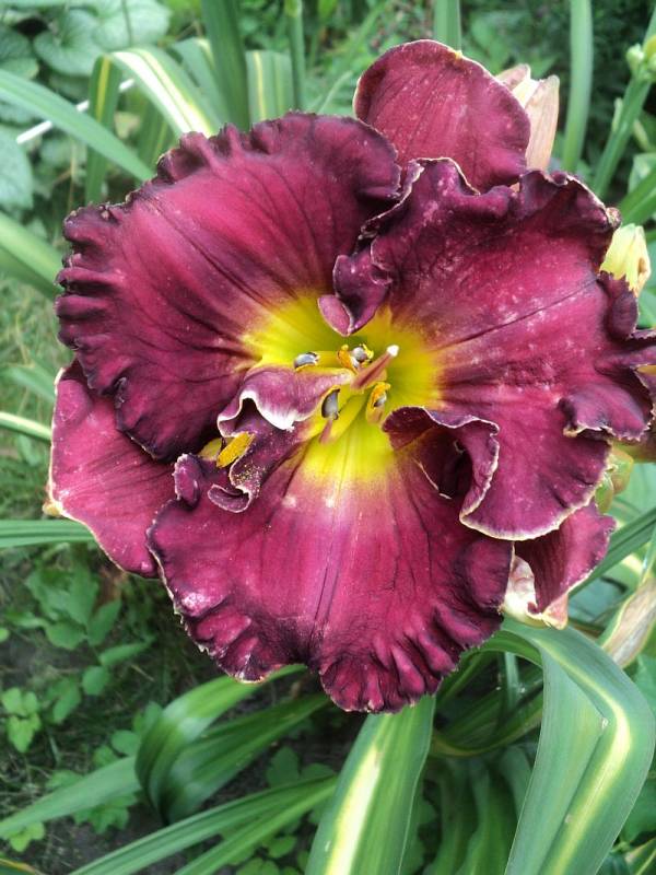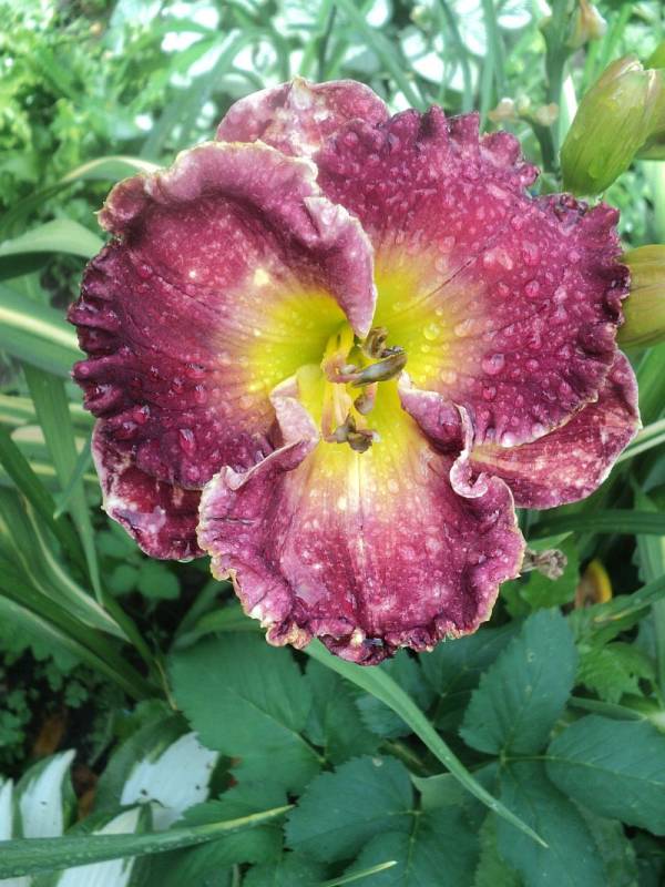 Hodowca: Carpenter-J., 2005 Wysokość: ok 60cm Kwiaty: kwiaty koloru purpurowo- fioletowego z lawendowym znakiem wodnym nad zielonym gardłem Wielkość kwiatu ok 15 cm. Stanowisko: słoneczne do półcienistego. Mrozoodporność: zimuje bez okrycia. Uwagi :zakwitł po trzech sezonach spędzonych u mnie , pierwsze kwiaty były pełne i nawet miałam wątpliwości czy odmiana nie jest pomylona ale kolejne kwiaty zrobiły się zgodne z wzorcem . Kwitnie długo i obficie..Liliowiec dla lubiących niespodzianki.