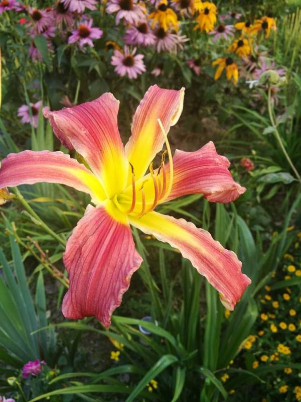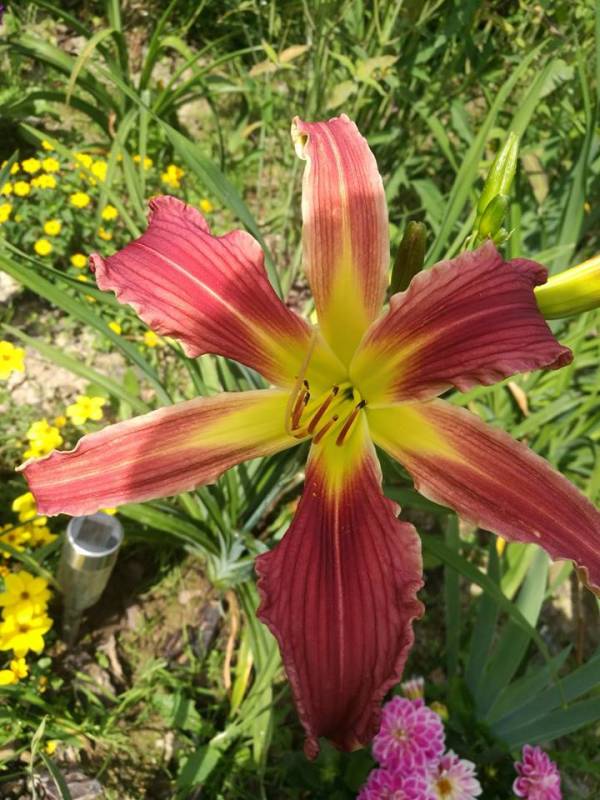 Liliowiec (Hemerocallis) Raspberry Star Hodowca: Hansen 1994 Wysokość: do 120 cm Kwiaty: malinowo-czerwone z dużym żółtym gardłem Stanowisko: słoneczne
