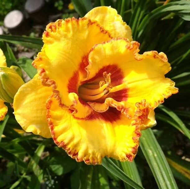 Liliowiec (Hemerocallis) 'Merry Moppet' Hodowca: Salter-E.H (2002) Wysokość: ok 69 cm Kolor: jasno żółty z czerwonym okiem i krawędzią (średnica kwiatu ok 9 cm) Stanowisko: słoneczne umiarkowanie wilgotne Kwinienie (pierwsze kwiaty pojawiły się w lipcu) Zimowanie: (u mnie zimuje bez problemu) Uwagi : Liliowiec dobrze się rozrasta tworzy dużo pędów kwiatowych powtarza kwitnienie