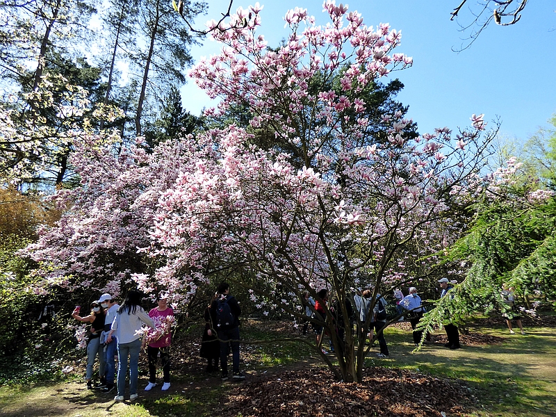 Marysiu... zatem jeśli nie chodzi Ci wyszukiwanie magnoliowych smaczków a bardziej na rodzinnym spacerze i pokazaniu dzieciom czegoś absolutnie zachwycającego, to proponuję okres kwitnienia magnolii Soulange'a - przebywanie wśród nich robi wrażenie na dosłownie każdym i każdy chce sobie zrobić zdjęcie na ich tle a panie influencerki przede wszystkim - stąd też ostrzeżenie, że weekendowo zakątek magnoliowy może być mocno oblegany