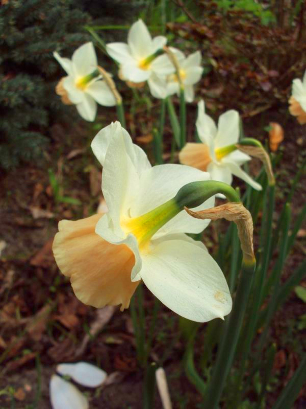 Wysokość: 30-40 cm Kwiat: kremowy z pomarańczowym przykoronkiem Kwitnienie: IV Wymagania: przeciętna ziemia ogrodowa z tendencją do lekko zasadowej, przepuszczalna Zapach: brak Mrozoodporność: wystarczająca