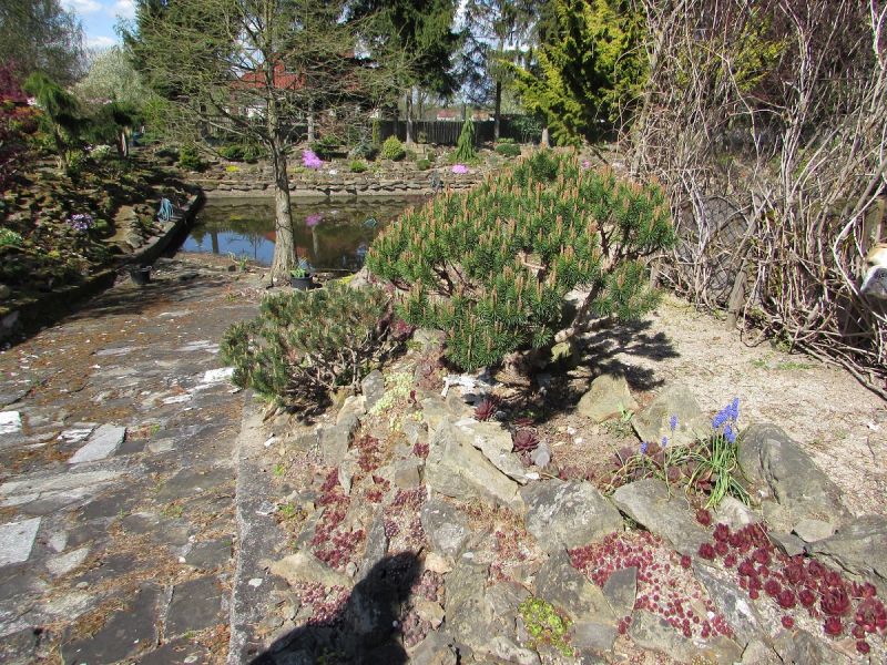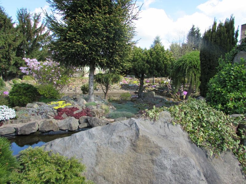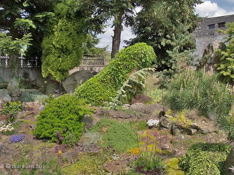 Zdjęcia nie będą zamieszczane chronologicznie, bo nie o to przecież chodzi... spacery nawet te wirtualne dostarczają niezapomnianych wrażeń i mogą być inspiracją dla kolejnych wielbicieli założeń skalnych. Na każdym kroku widać tam z jak wielkim smakiem i miłością skomponowane zostały nasadzenia roślinne oraz kamienne aranżacje. Głównym budulcem skalnym użytym do budowy tego ogrodu skalnego był piaskowiec, pochodzący z pobliskich kamieniołomów.