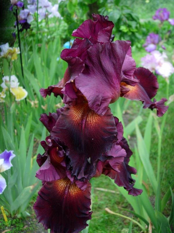 . To może być Sarah Bernhardt. Krzaczek już całkiem, całkiem. Pewnie w przyszłym roku będzie kwitł (w tym już chciał). Jest jeszcze jedna wiśniowa – pachnąca. Ta tworzy spory krzaczek, ale głównie z małych, krótkich kłączy. Zastanawiam się, czy tych kłączy trochę nie oddać, bo wiem już, że są zdrowe.