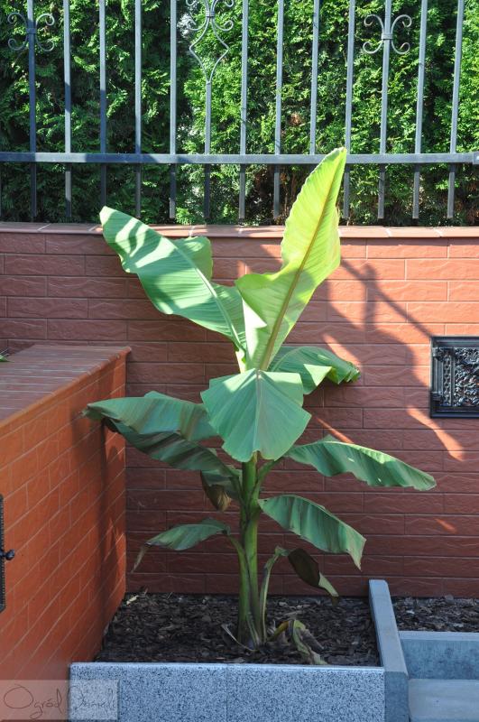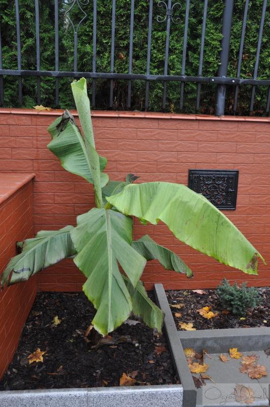 Niestety nie mam zdjęć z obudowania bananowca, bo byłam w pracy. Mamy nadzieję, że uda mu się zimować w tym kącie ogrodu, przy murkach.