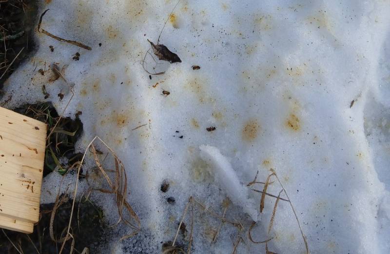 Dziś, przy +7 w cieniu, pszczoły wyleciały z uli w celu oczyszczenia jelit.