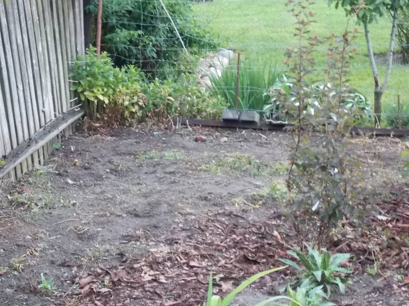 po - na razie za płotkiem rozłożyłam puste worki po korze - tam niczego i tak sadzić nie będę a jak przyjdzie ogrodzenia to pomyslę sensownie...