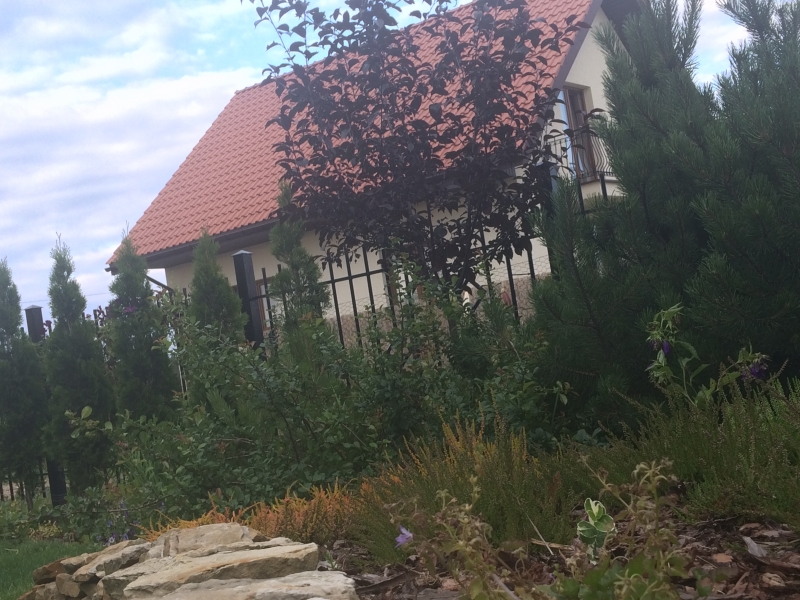 Ogródek młody, niestety działka nie była zalesiona, więc nad szkieletem ogrodu dopiero pracuję. Pierwsze rośliny to były iglaki, stanowiące teraz już cieszącą oko ozdobę. Kupuję drzewa, na miarę możliwości dorodne- imieninowe, urodzinowe..jednak nadal ogród nie jest cienisty i z trudem znajduję miejsce na posadzenie jednej chociażby paproci..