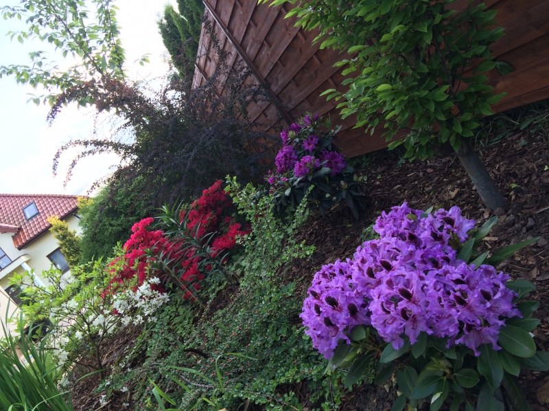 Opieram się głównie na roślinach kwasolubnych- rododendronach, azaliach, wrzosach, hortensjach. Powoli odkrywam świat bylin..i kocham trawy, chociaż nie zawsze z wzajemnością ;)