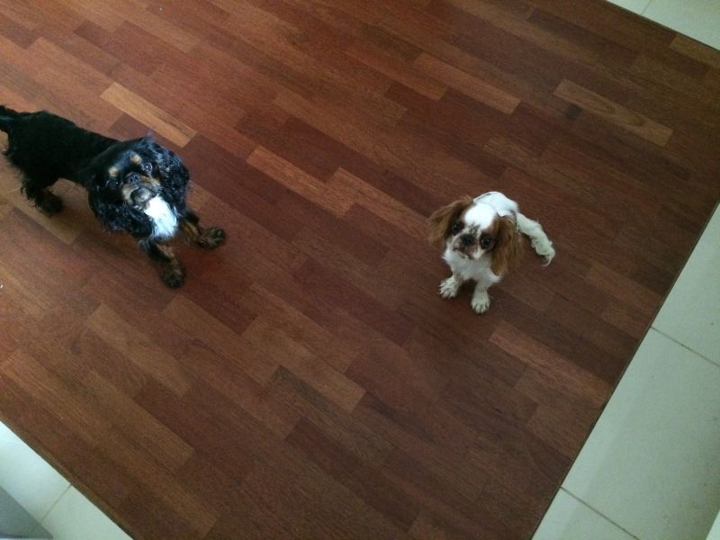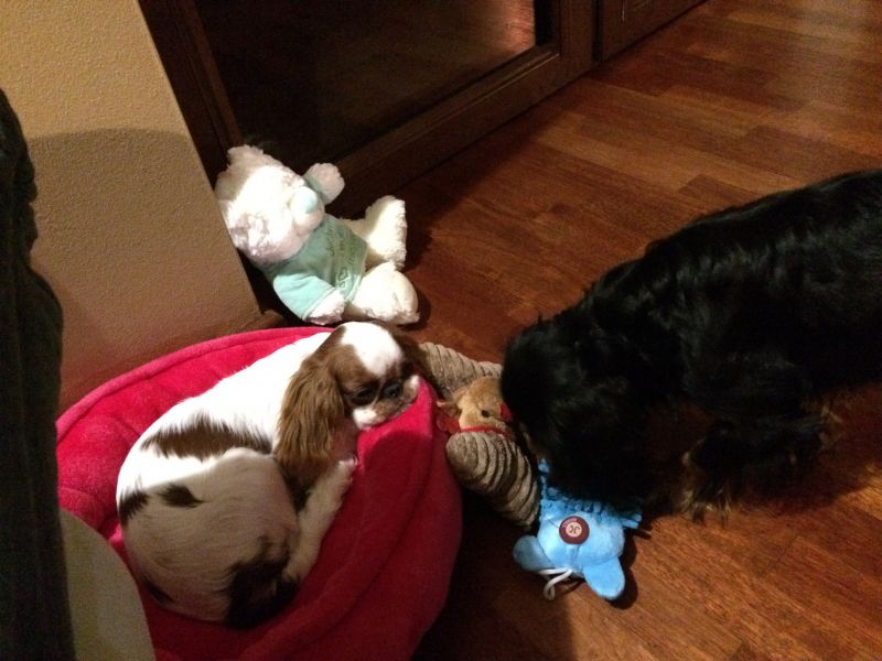 Dziś zawołałam psy do kuchni, otworzyłąm Cargo zerkając przez ramię i Cyguś na malucha sie nie rzucił..może z czasem się nauczy, że kolega obok ma prawo się kręcić.