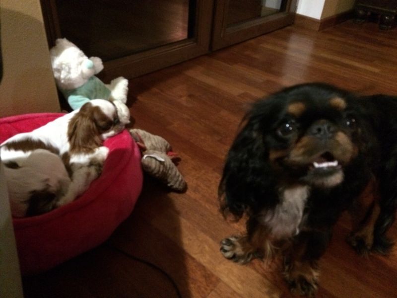 Cyguś jest jednak bardziej samolubnym psiakiem. Wczoraj wieczorem ostro odgonił maluszka, jak otworzyłam cargo, gdzie chowam psie smakołyki- maluch w popłochu uciekł z kuchni.. Huknęłam na Cygusia, a on zrobił skruszoną minę.