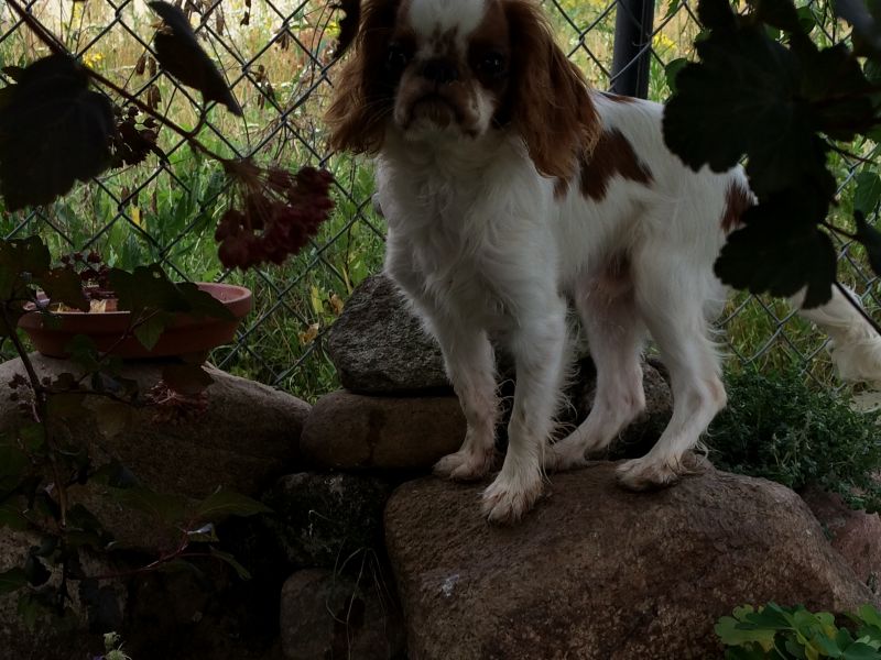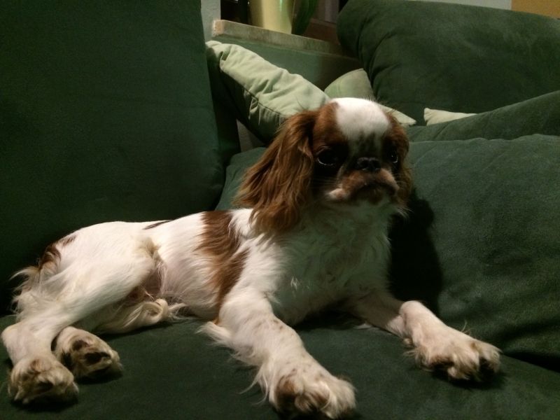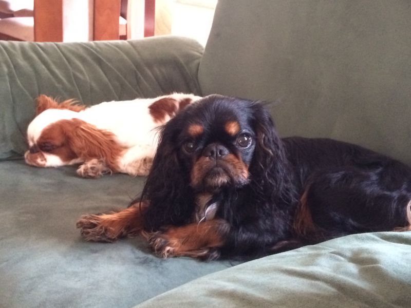 Ma kłopot z zaakceptowaniem sytuacji, że leży obok mnie na kanapie, a ja wsadzam na kanapę Marvisia. Wtedy warczy i wzrok ma stalowy- w takich chwilach bardzo pokazuje, że paniusia jest jego.