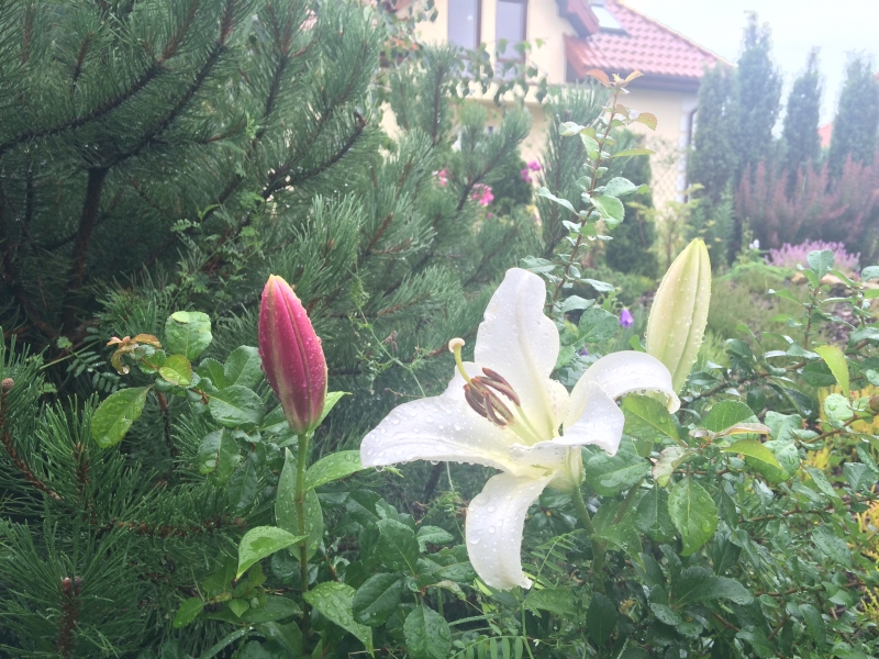 za to otwierają się pachnące orienpety. To niestety NN, tegoroczna pomyłka z Lilypolu- miały tu rosnąc Altari