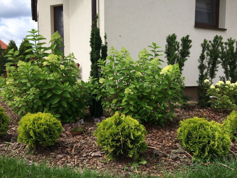 Zamiast równania wszystkich w szpalerze, rozważam delikatne ciachnięcie każdego czubka o kilka cm, żeby pobudzić krzewienie.