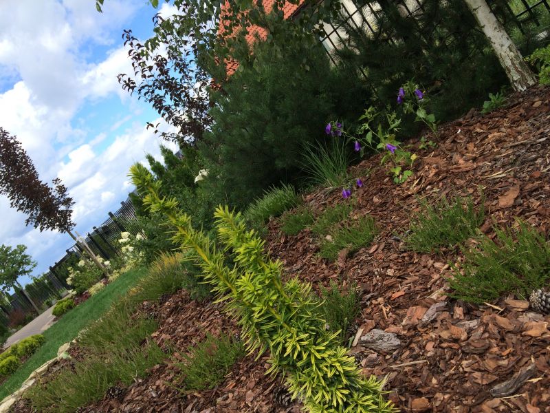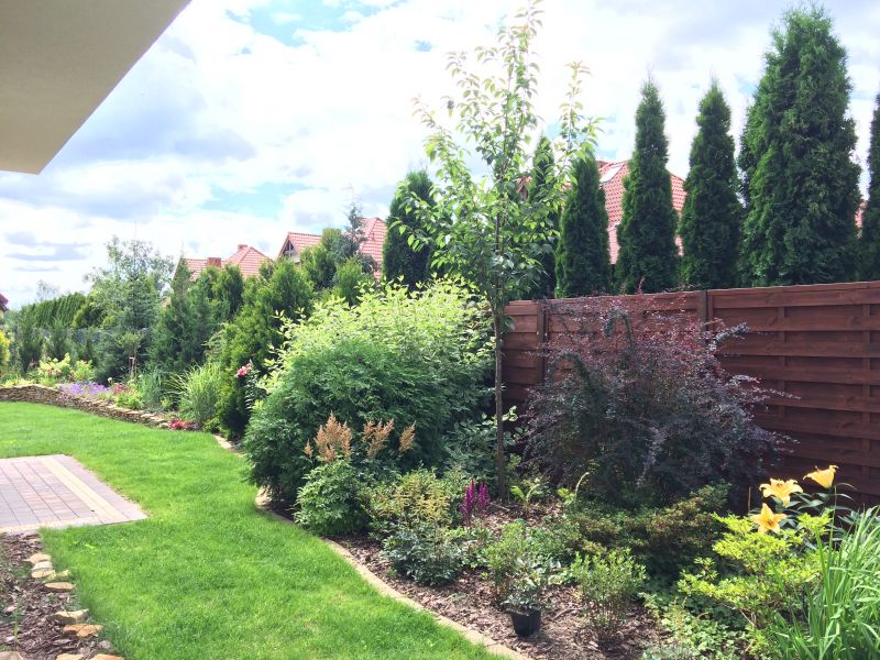 Trzmielina miała iść na ogrodzenie od północy i wspinać się. Trochę nie dowierzałam, że zrobi to odpowiednio szybko i dość sceptycznie podchodziłam do tego pomysłu. Przęsła do zasłonięcia szybko, a nie za kilka lat.