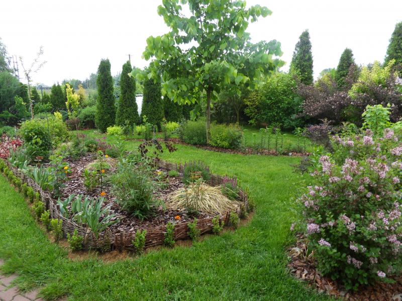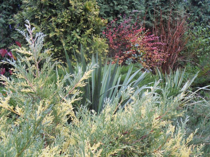 by dobrać krzewy ,teraz chce bym je poprzesadzał między żywotniki ...bo jest za zielono....a pani chce by było kolorowo jak u Cyganki w tobołku...
