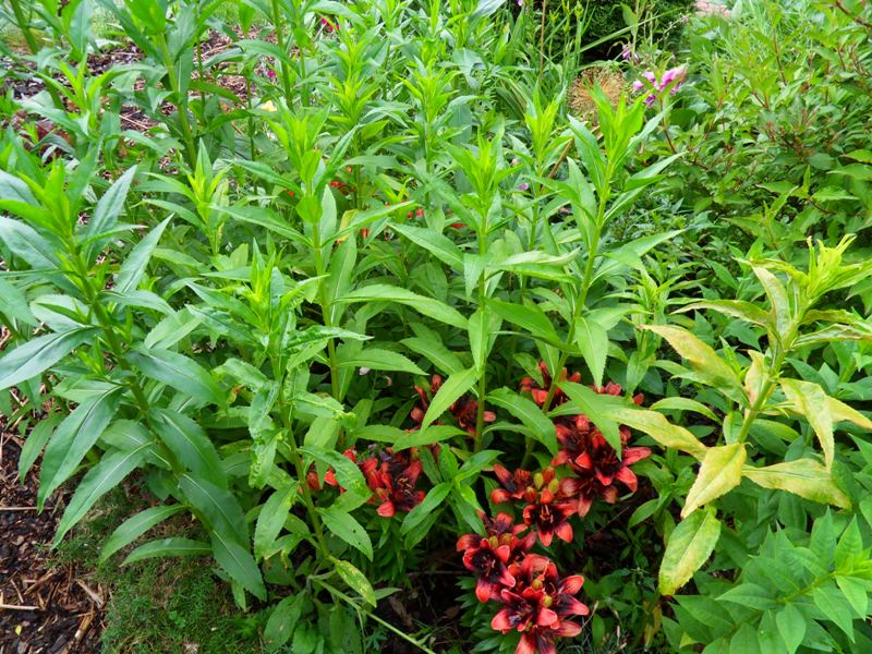 W tym sezonie bardzo mocno ,,ruszyła'' odętka wirginijska zagłuszając posadzone na ratce niskie lilie, ,,mądry przekaz'' informuje że odętka ma do 70cm wysokości - moje mają już drugie tyle i mocno się rozrasta