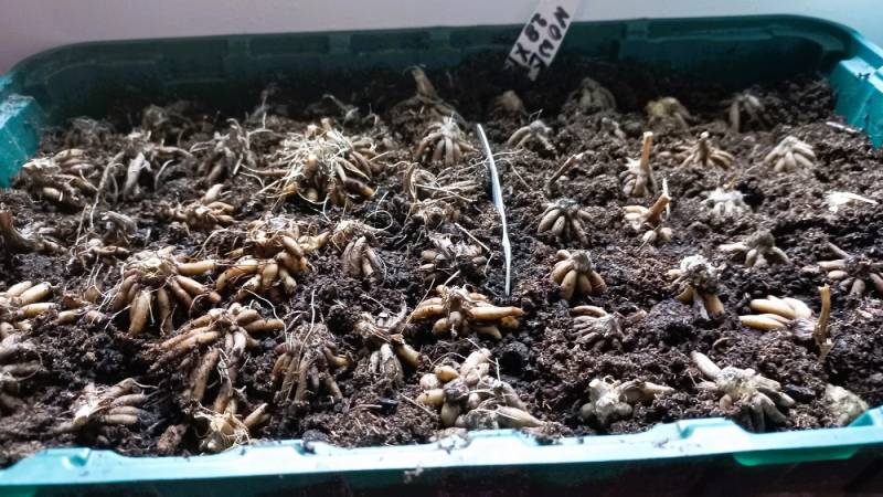 a więc po namoczeniu posadziłam je 28.11.2025 w dwóch opakowaniach /trochę dokupiłam ale większość to kłącza zeszłoroczne /