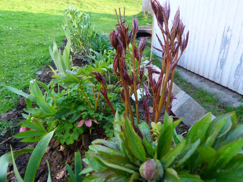 Za domem,też zmieniam rabatę były skalniaki teraz nasadziłam kilka rododendronów,3 kupiłam,3 przeniosę z innych rabat,wsadziłam liliowce,ziemia jest twarda jak beton,skoszoną trawę będe dawać aby sie więcej ziemi zrobiło.