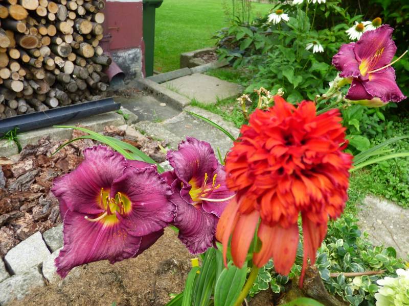 Druga rabata za domem też została zmieniona z powodu zarastania,wiosna pięknie skalniaki kwitły a potem pustka,nasadziłam kilka rodków,bo teren płaski,a ze ziemi prawie tam nie ma to przez cały sezon letni nosiłam tam skoszoną trawę,dokupiłam kilka liliowców,irysów,jeżówek zobaczymy jak w nowym sezonie się to zaprezentuje.