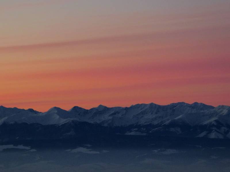 Od Kępy dzień zaczął się budzić i jest to najpiękniejsze zjawisko na ziemi,przejrzystość powietrza niesamowita przed szczytem zaczęło wiać Tatry na wyciągnięcie reki my podziwiamy pierwsze wynurzenie słońca a wszyscy mega turysci tak zmarzli na szczycie ze zamiast podziwiać to,po co przyszli to zajęci byli rozgrzewka