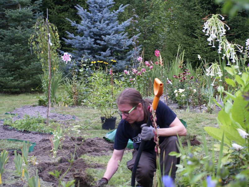 Właśnie czekam, aż Qrczak powstanie, mieliśmy jechać na rekonesans do dużego lasu, niestety kilka minut temu padać zaczęło, ale co tam, taki deszcz, to nie deszcz, wczoraj też kapało za kołnierz co jakiś czas, a z prac ogrodowych nie zrezygnowaliśmy