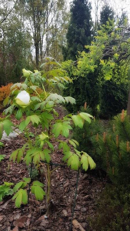 Piwonie drzewiaste są 2, posadziłam je razem, ale mysle czy jednak nie posadzić ich w dwóch różnych miejscach. Póki jeszcze nie zapuściły korzeni głębiej. Z jednej strony szybko bym chciała mieć większy krzaczek, a z drugiej... byłyby dwie, choć mniej okazałe. Kwitnienie zapowiada się wielkimi kwiatami! Pąki są naprawdę grubiuskie...