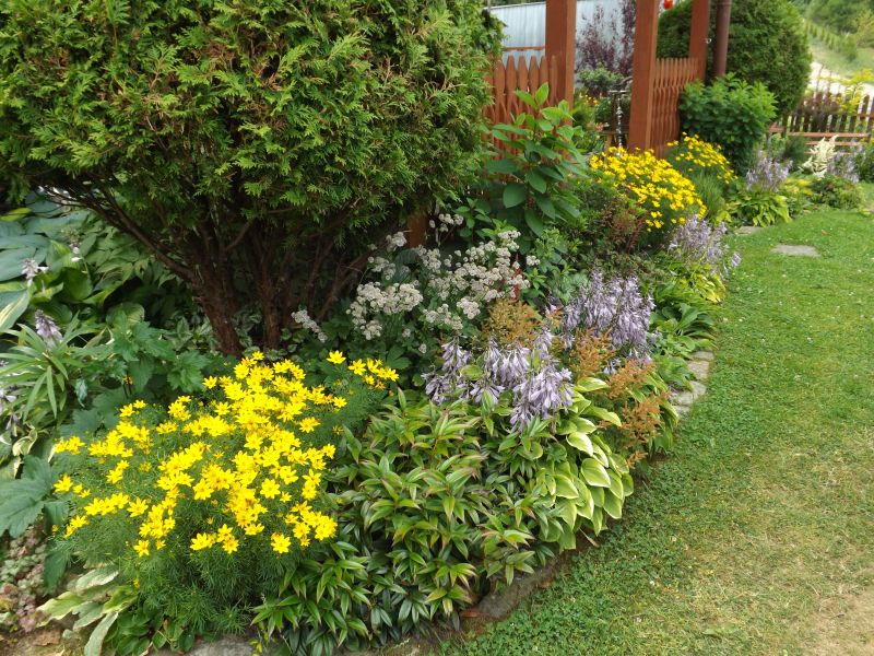 Kamienne ścieżki wśród kwiecistych rabat
