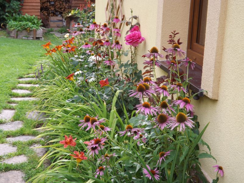 Kamienne ścieżki wśród kwiecistych rabat