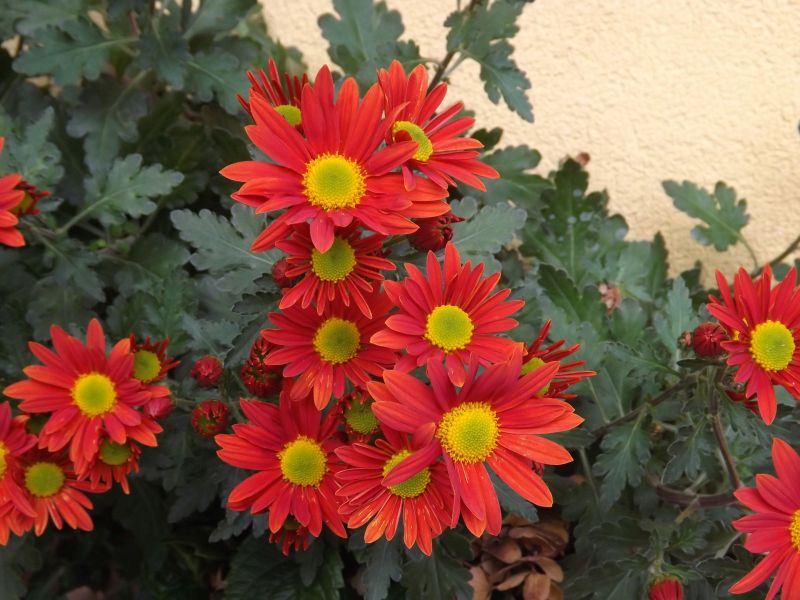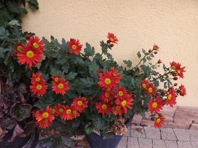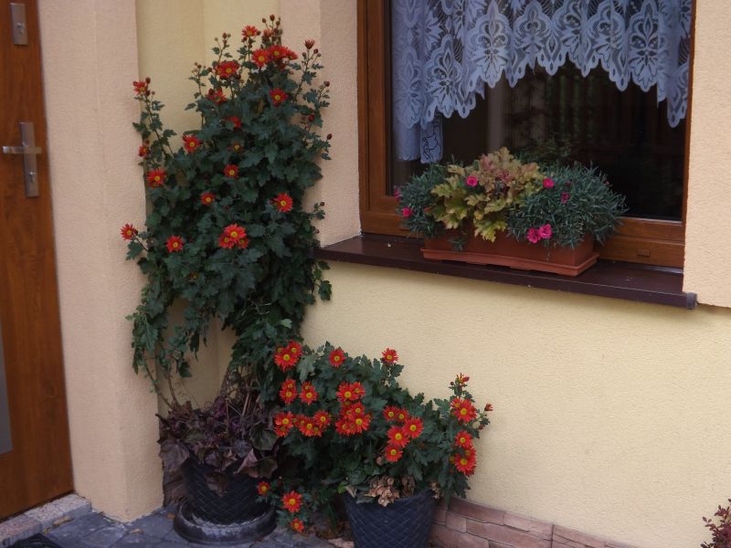 Ta chryzantema to jakiś potwór :woohoo: taki wysoki wyrósł, teraz wspiera się o ścianę, a na rabacie będzie musiała mieć chyba podpórkę think: