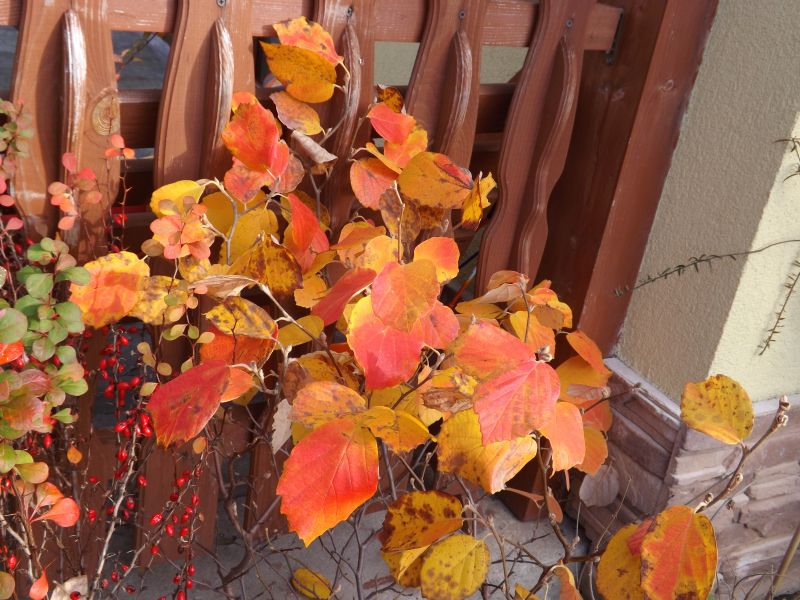 Fotergilla jeszcze ma listki i łapie coraz ładniejsze kolorki
