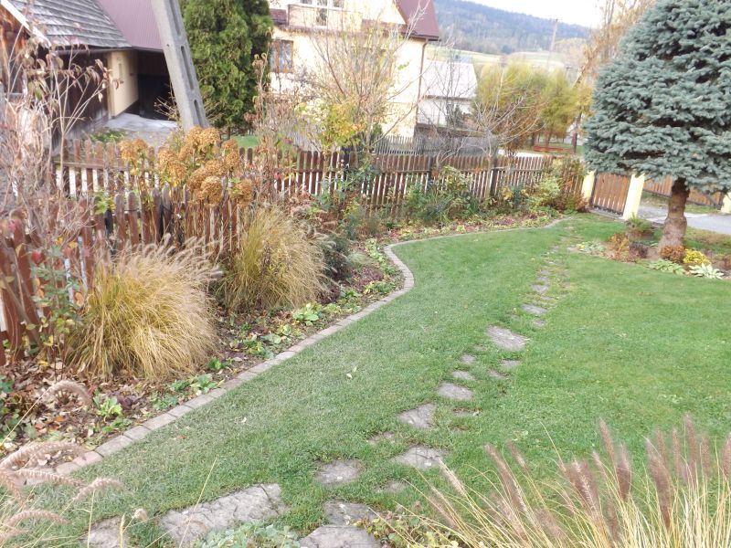 Mnie tam wcale nie dziwi to sukcesywne ujmowanie trawnika. Szkoda miejsca na trawę, a tyle ciekawych roślin jeszcze czeka. Z tym świerczkiem to mi dałaś pomysł, mam taką jodłę trochę rozklapioszkę z dołu i jakby ją podciąć to chyba "myszy" by tam fajnie pasowały. Owoce dereni bardzo lubię, u mnie już po, wszystkie spadły.