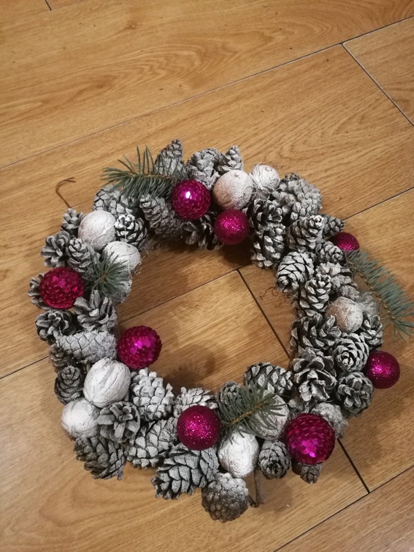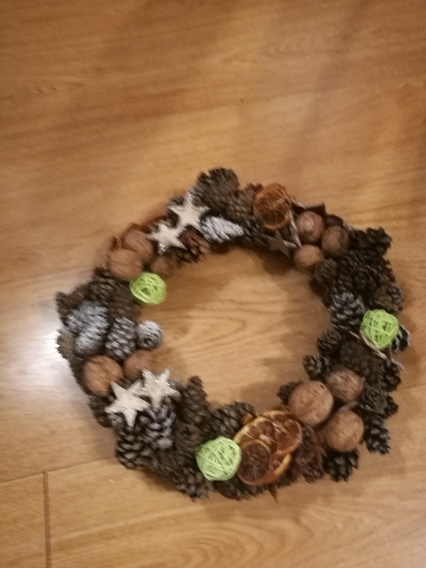 Wiesiu, szyszki do wianków przyklejam na klej na gorąco. Trochę to uciązliwe, bo klej wycieka, trzeba sie spieszyć, wczoraj oparzyłam się z tego pośpiechu. Ale mimo wszystko lubię to robić