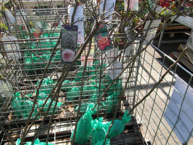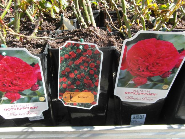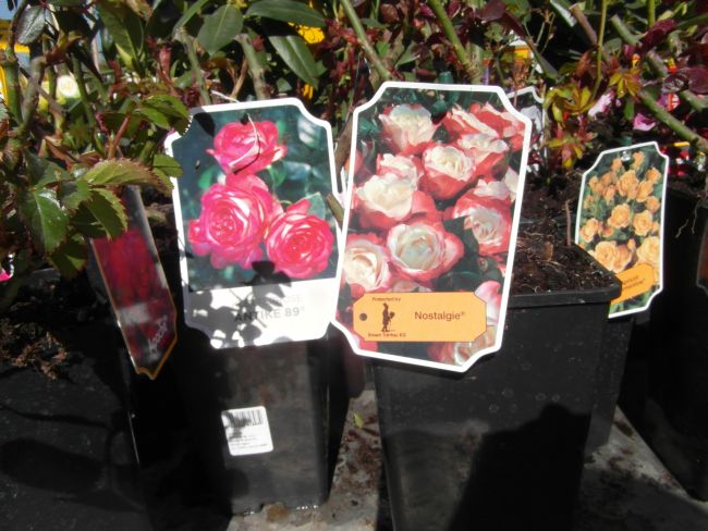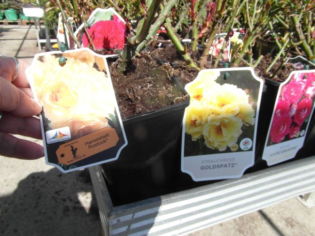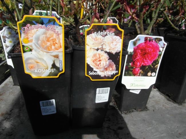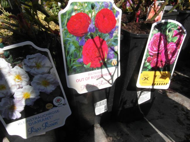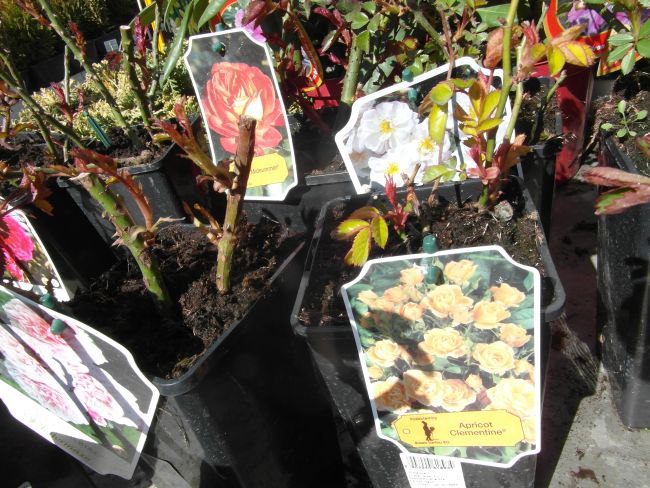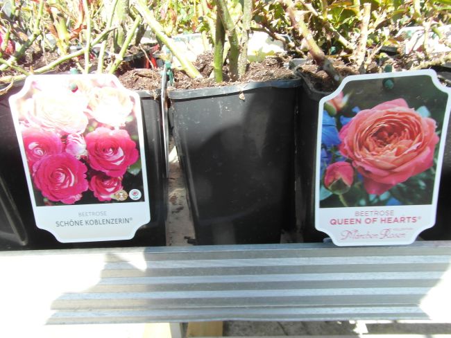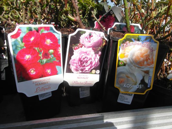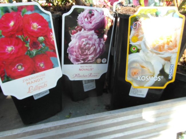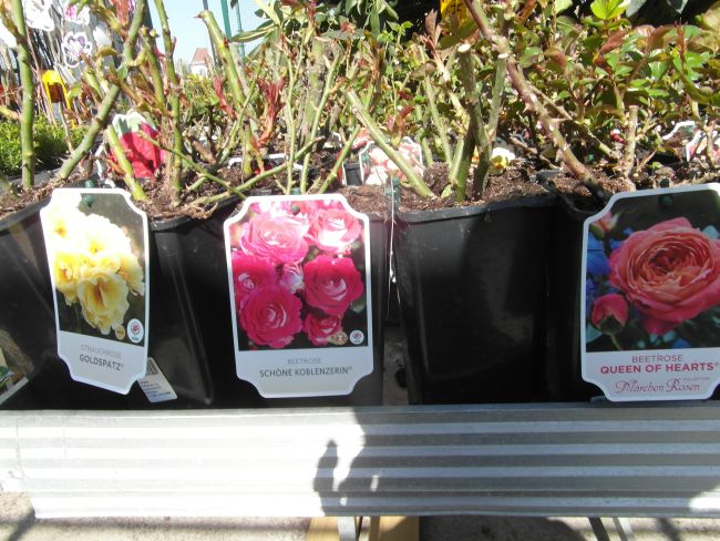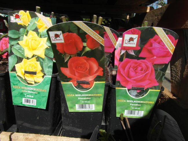 Gdy mnie dzisiaj znudził spacer bez celu- pojechałam do Liroy Merlin, bo podobno sa róże w doniczkach. Były... wink-3 Zrobiłam fotki, by w domu przejrzeć i zastanowic sie czy ewentualnie którejś nie chcę. Rosanex w doniczkach 13zł, a Kordes i Tantau 23 z groszami. Było tez kilka na pniu z gołym korzeniem- po 32zł. Sorry za niezbyrt udane fotki- słonko mocno świeciło, okropnie wiał wiatr- wszystko wywracał- niezbyt dobry czas na fotki...