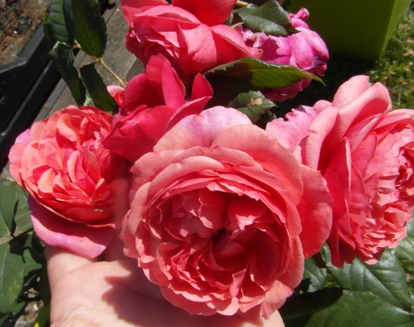 Janko- z tego co wyszperałam to jest taka róża- stara odmiana - czerwona- Old Cambridge Casle. Czasem pod ta nazwa w kartonikach są czerwone róże angielskie np L.D.Btaithwaite.