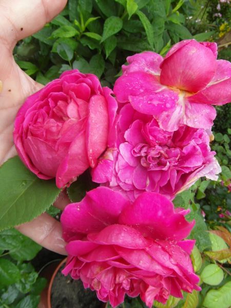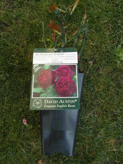 Janko- z tego co wyszperałam to jest taka róża- stara odmiana - czerwona- Old Cambridge Casle. Czasem pod ta nazwa w kartonikach są czerwone róże angielskie np L.D.Btaithwaite. Ja nie wiem co mi się dostało, bo kwiaty każdy raz ma trochę inne- a niewiele ich było. Na razie mam ją podpisaną Cambridge Castle. Jakoś przecież muszę ja oznaczyć... :)