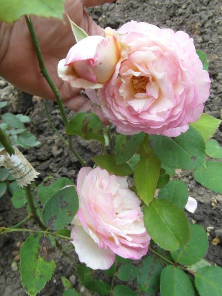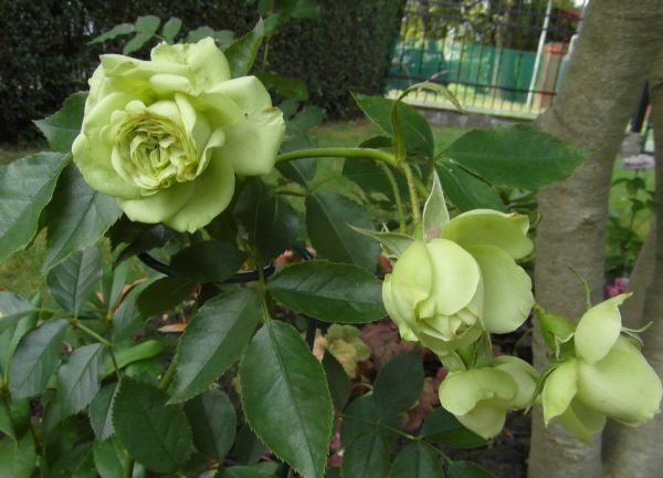 Larissa - różany "potwór"- jak dla mnie rośnie i kwitnie za mocno. Bardzo ją przycięłam teraz- może mnie zadowoli...
