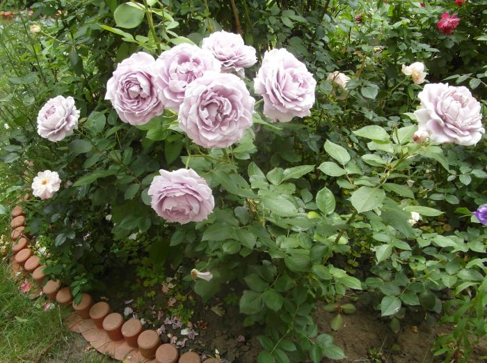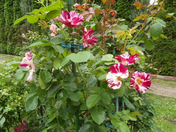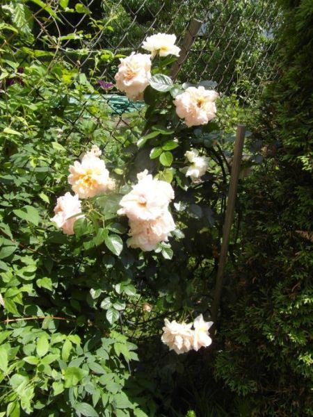 Tak ładnie porasta pnąca róża LAVENDER LASSIE. Przycięłam bo zbyt właziła na lilaka. Dostanie piramidke - tylko poskładam, bo jeszcze w opakowaniu...