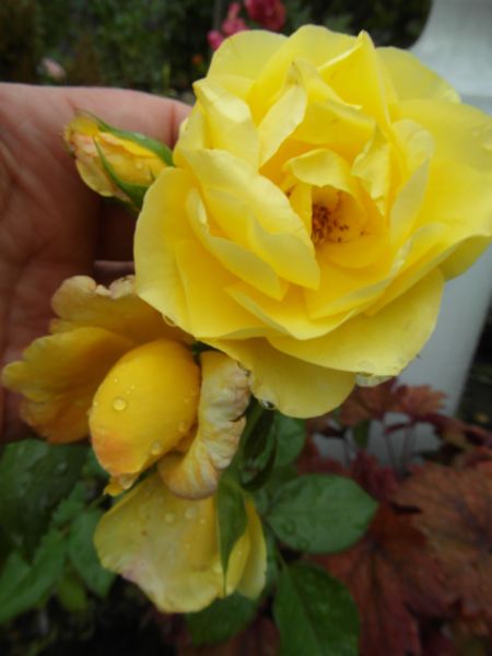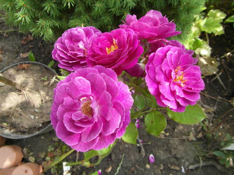 PURPLE EDEN - wykopałam końcem lata do doniczki- piękna róża kolorystycznie, ale marniała- może to pomoże sie jej wzmocnić. Na zimę była zadołowana...