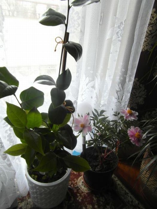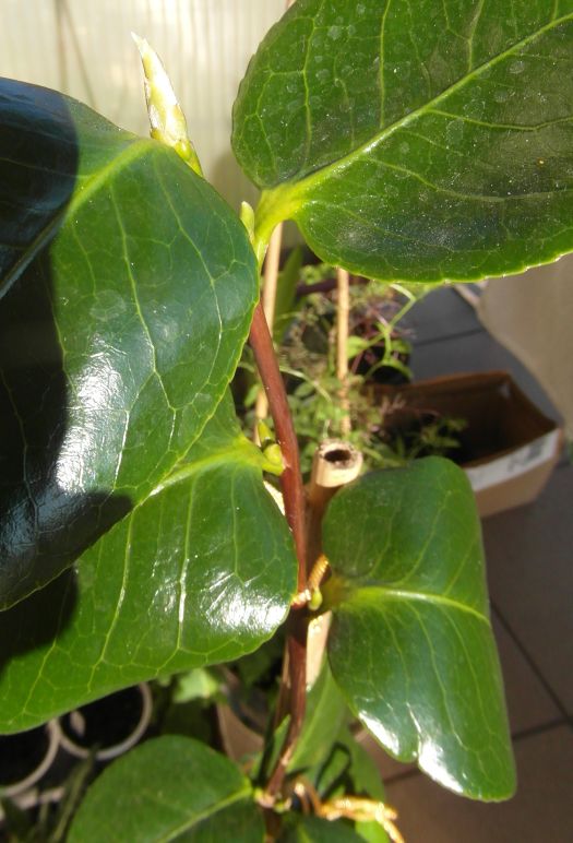 Do stycznia doniczka z kameliami stała na parapecie w piwnicy- w styczniu bodaj- przyniosłam na południowe okno do mieszkania. Przyrosły sporo i wytworzyły nowe gałązki i sporo liści. Mało na temat kamelii wiem, ale ładna i z samych liści- jak zakwitnie kiedy to będzie bonus. wink-3 Ostatnio stała ze dwa miesiące przy oknie balkonowym, z dala od kaloryfera... Teraz stoi na balkonie i chyba jej dobrze, bo mimo zimna ma sporo pączków- nie wiem tylko czy to na kwiaty czy będzie znowu wiele nowych liści...