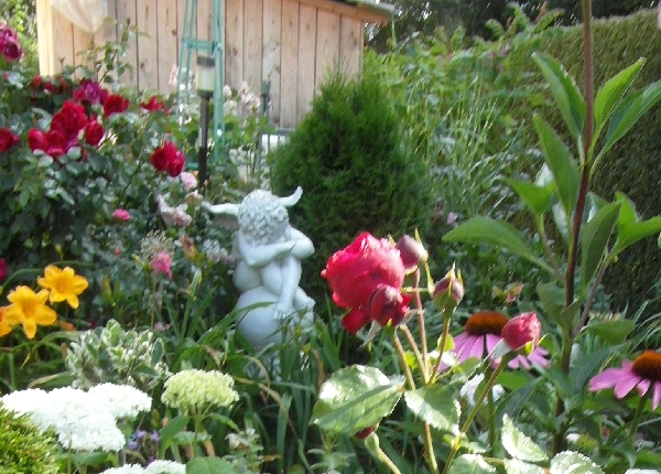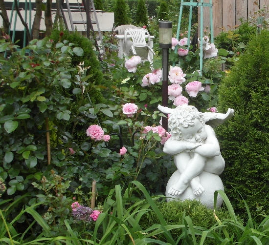 Co do figur to ja je lubię i chociaż wiem,że nie każdemu się podoba spora ich ilość między roślinami- ja je lubie i kupuję co jakis czas nowe, bo niestety szybko sie zuzywaja. Zrobione chyba z kiepskiego materiału. krecigl Kupiłam kilka betonowych, ale za ciężkie do manipulowania nimi po ogrodzie, więc jednak wolę takie lżejsze. Różne lampeczki i takie tam pierdółeczki zalegają po ogrodzie- mój mąż mówi, że to ogród Gargamela- nabija się ze mnie. :) Ale córka zartuje- a kto ci zabroni postawic czego chcesz na swoim ogrodzie> I tego się trzymam... 2smiech