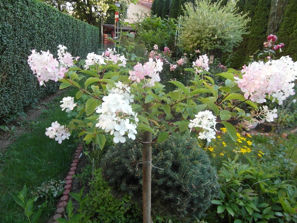 Hortensji bukietowych mam sporo, wszystko młódeczki. Może ten sezon pokaże u wszystkich kwiaty... Mam nawet bukietowa na pniu, ale słabo kwitła- chyba wymaga więcej opieki niż jej dałam. To tez zadanie na nadchodzący sezon- tak zadbać by pokazała ładniejsze kwiaty... B) Niestety nie znam nazwy. Kupiłam z pąkami w ogrodniczym, bez etykiety...