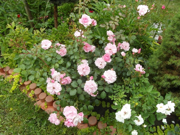 A ta fotka zrobione gdy częśc starszych, / z drugiej strony / juz przekwitła a coś tam dokwita... Nad nimi pnaca róża Florentina...