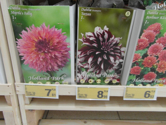 Uporządkowałam fotki i mogę już wam pokazać co jest w Auchanie. Niestety nie wszystkie bulwy i kłacza są w zadowalającej wielkości, ale kto pierwszy ten lepszy- coś dla siebie wybierze. Przyznam,że wybrałam największe kłącza kann i dalii które chciałam ... Fotki wstawię w ratach by wszystkie zmieścić... :)