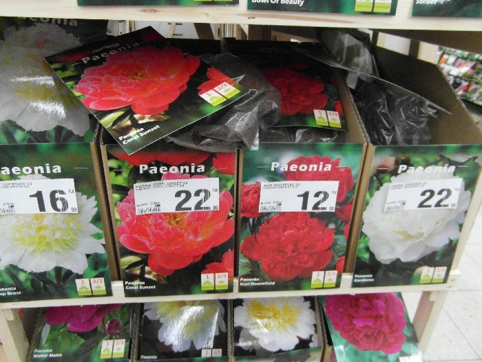 :) Pogoda dzisiaj względna chociaż chłodno- wybrałam się więc znowu na rekonesans... Pojechałam znowu do B1 - ciekawa byłam czy dołożono co z roślin na regały. Owszem, sporo nasion kwiatów, warzyw, cebul i różnej drobnicy w kapersach, Dobrałam sobie 2 piwonie, 3 opakowania trytomy, i dwa opakowania mieczyków,