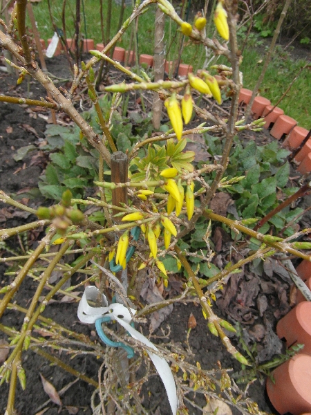 Forsycja u mnie rozkwitła, wiec pełną parą zaczynam od poniedziałku. Beatko- ja się nigdy nie śpieszę z tymi robotami, bo pośpiech niewskazany- i to w taką zmienną pogod wiosenną. Ale forsycja pogania- więc zaczynamy! wink-3 2smiech Rusze z impetem, bo mam tego ogrom- i tak mi kilka dni zejdzie- bo to i cięcie i nowe podwiazywanie i upinanie od nowa na piramidkach. Co roku od nowa i coraz ciaśniej zawijam- bo rosną niektóre jak głupie i mają spore przyrosty. A także to co wytnę zrobi luz , więc trzeba od nowa ułożyć.