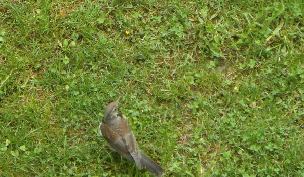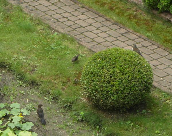 Ziemia mokra, robactwa pełno- dzisiaj przyuważyłam przed południem będąc na balkonie - duży ruch na ogródku. To kilkanąście ptaszków zawzięcie przefruwało, kicało i wydłubywało coś z rabatek, krzaczków i trawnika... Czyli mój wniosek- sporo robaków. Na jednej fotce nie dało rady ich złapać , bo w różnych końcach ogródka pracowały- ja się uśmiechałam, bo to naturalny środek ochrony - zmniejszą populacje szkaradków i sobie podjedzą... wink-3